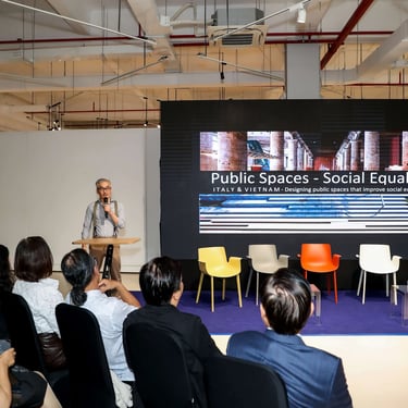 During the panel discussion, speakers from Italy and Vietnam shared innovative initiatives, ranging from urban architecture and public space design to solutions that enhance inclusivity in design: